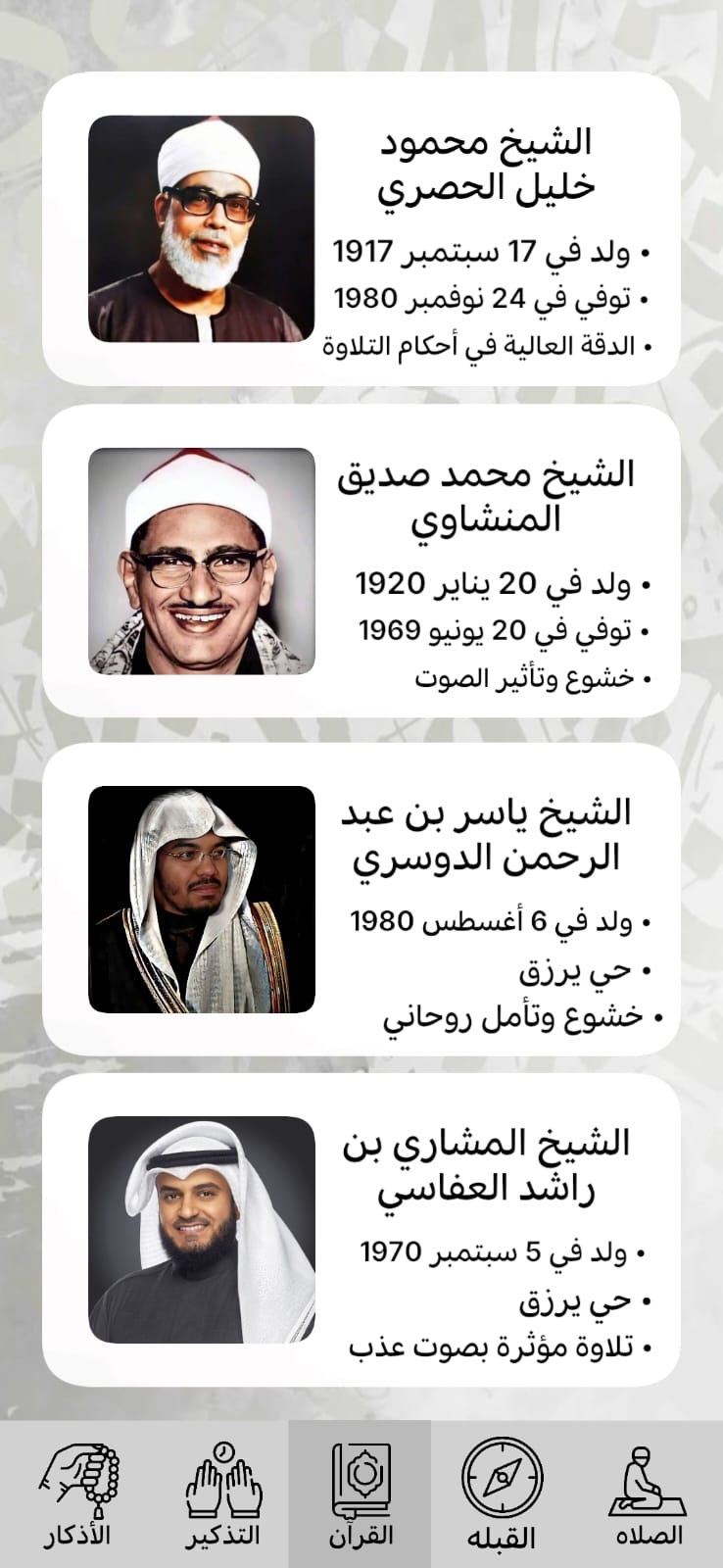 2. القرآن الكريم كامل بصوت الحصري والمنشاوي وياسر الدوسري والمشاري 📖