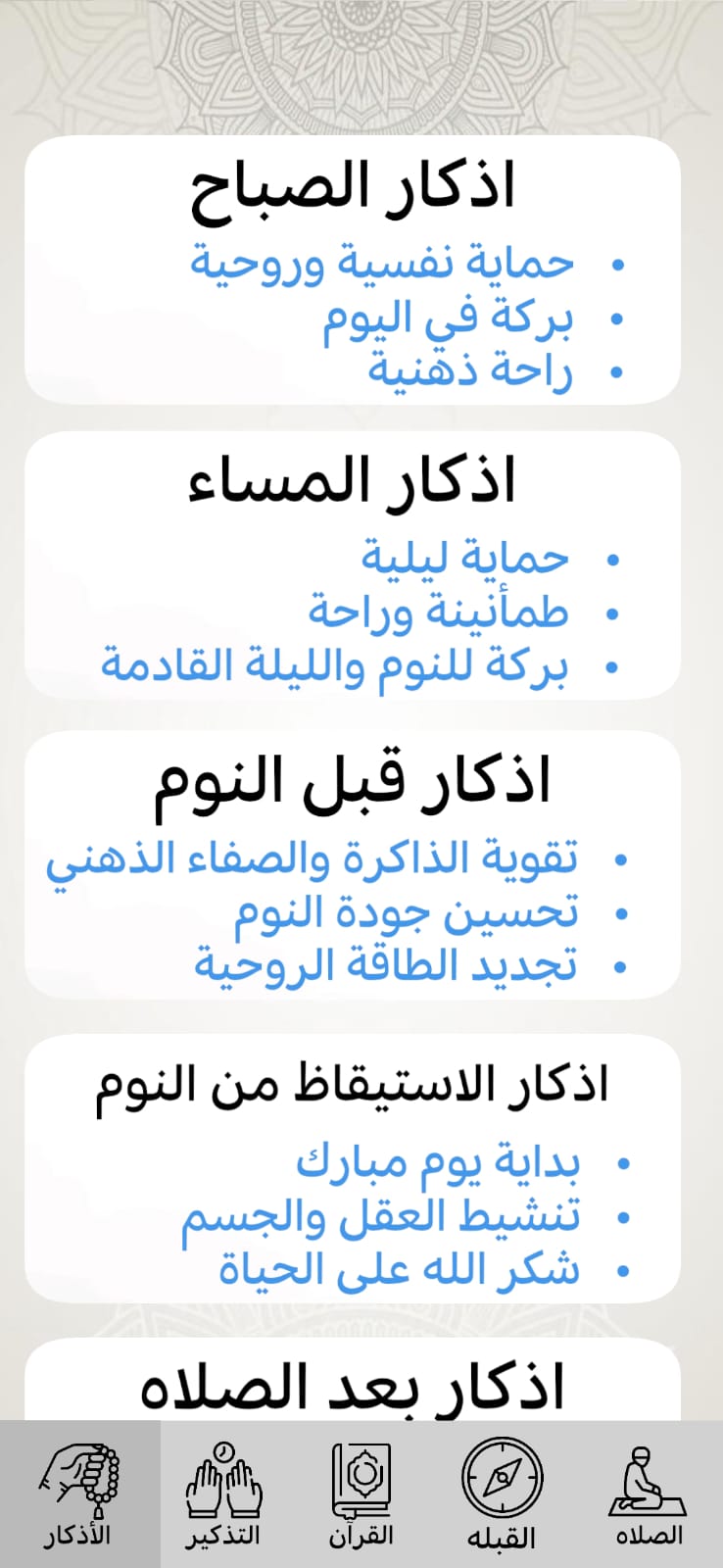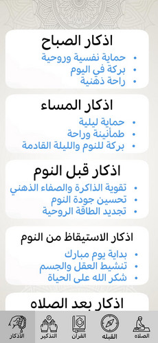 5. إشعارات تنبهك ببدء الصلاة وأذكار الصباح والمساء والكثير من الفضائل الأخرى 🔔